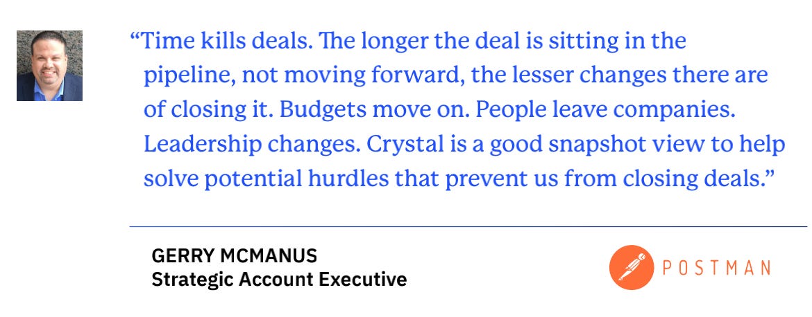 Crystal’s predictive analytics provide accurate deal projections during pipeline review meetings.